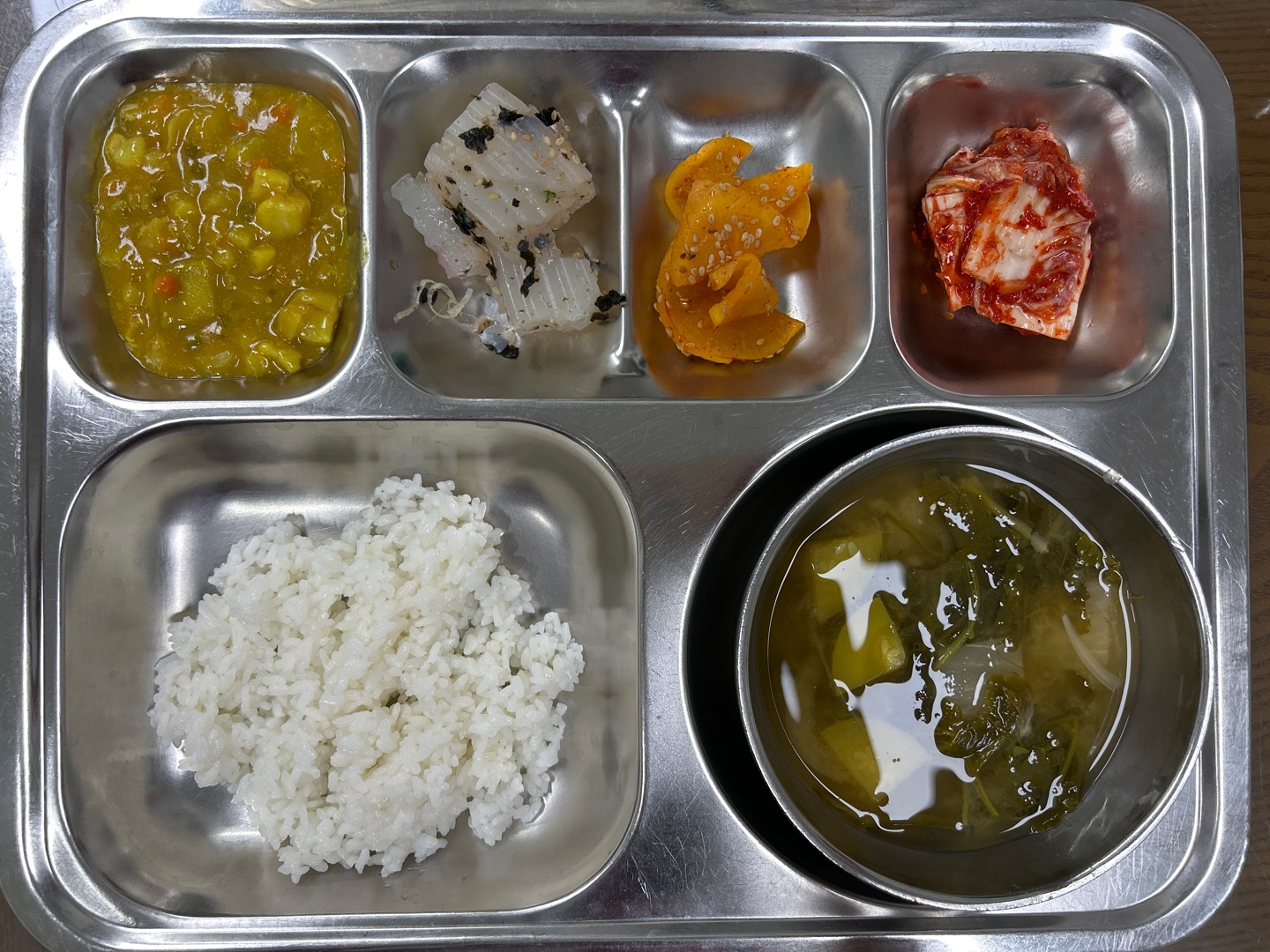 - 흰쌀밥, 냉이된장국, 카레라이스, 청포묵김무침, 단무지무침, 배추김치