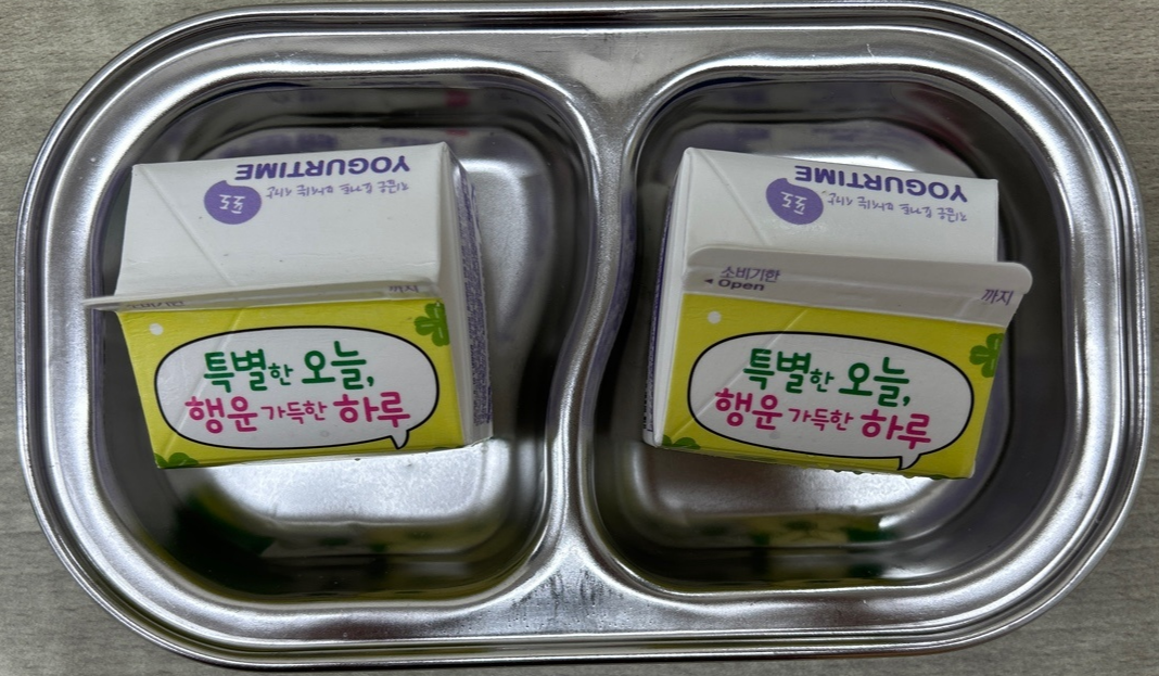 - 흑미밥, 매생이떡국, 스크램블에그, 컬리플라워볶음, 양배추나물, 배추김치