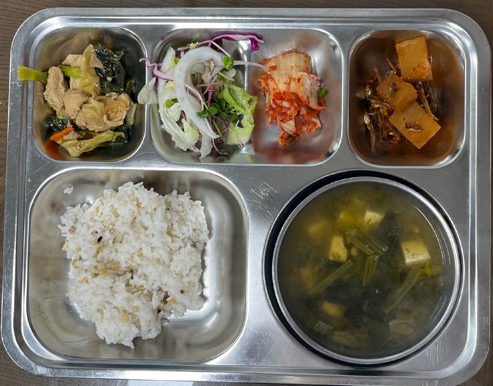 - 혼합잡곡밥, 시금치토장국, 치킨데리야끼, 멸치무조림, 이탈리안샐러드, 배추김치