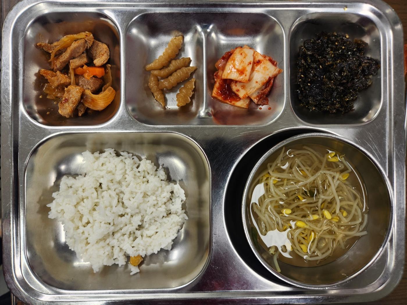 - 병아리콩밥, 콩나물국, 매콤돈육장조림, 김자반볶음, 초석잠, 배추김치