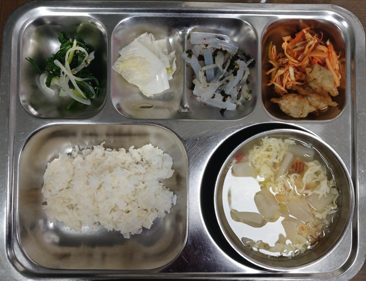 - 기장밥, 북어채소국, 비빔만두채소무침, 청포묵김무침, 쪽파나물,백김치