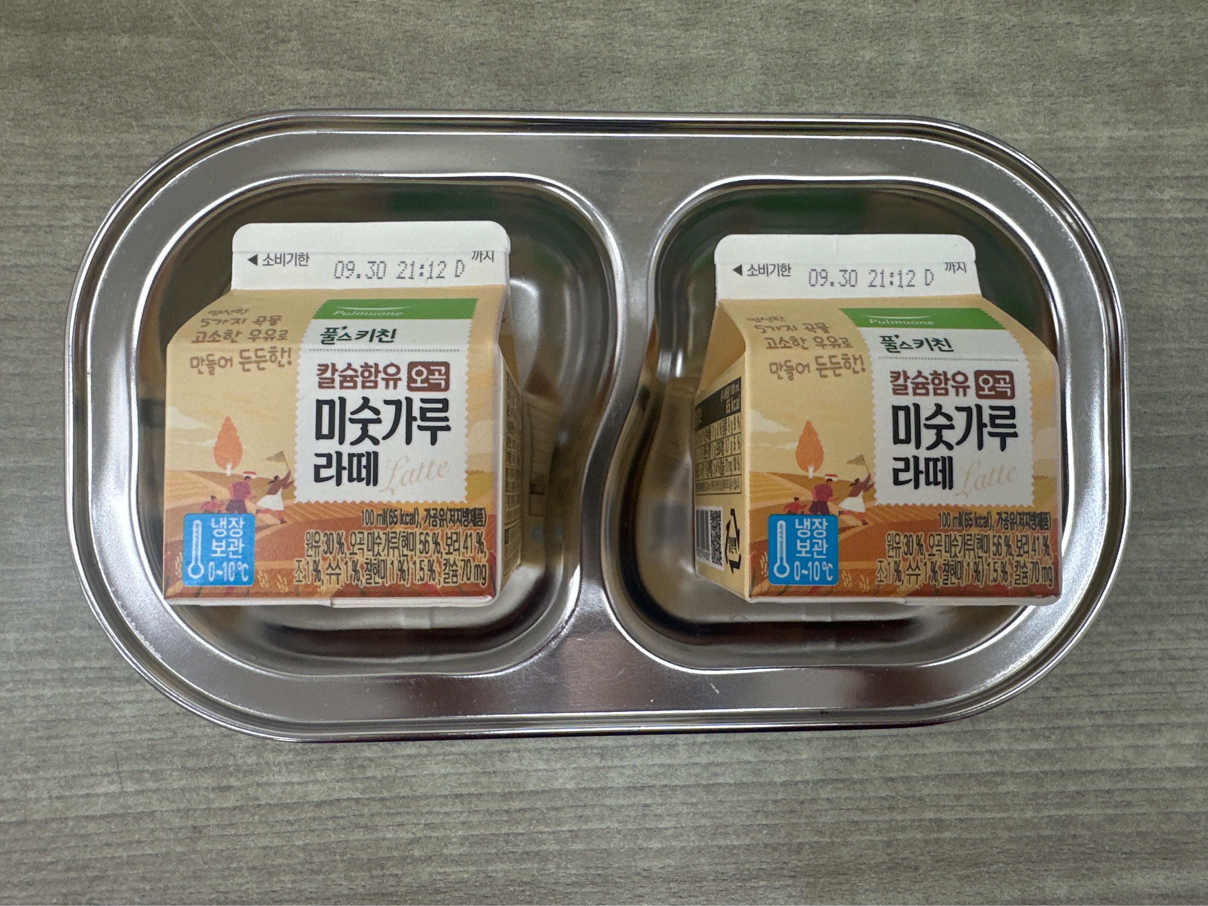 - 기장밥, 단배추고추장국, 떡갈비야채볶음, 톳두부무침, 꽈리고추찜, 배추김치