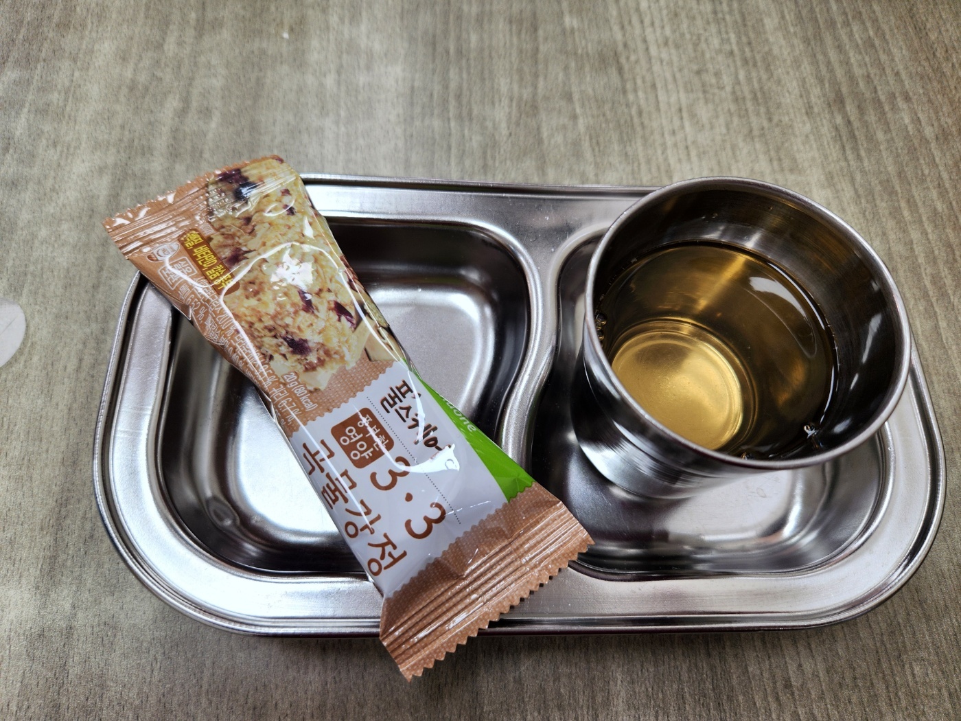 - 보리밥, 북어해장국, 고등어감자조림, 연두부/양념장, 단배추나물, 열무김치