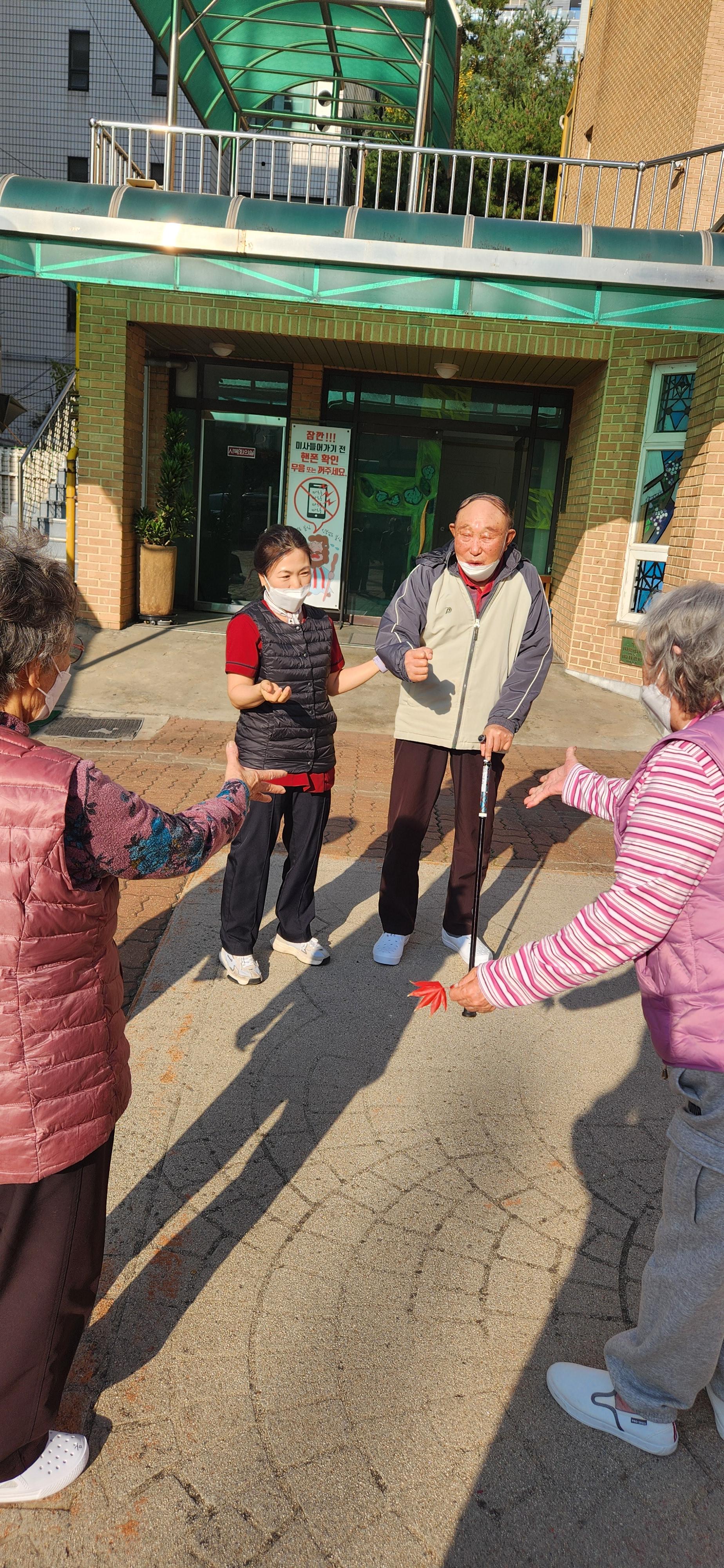 어르신들과 함께 센터 앞마당에 산책 나왔습니다~