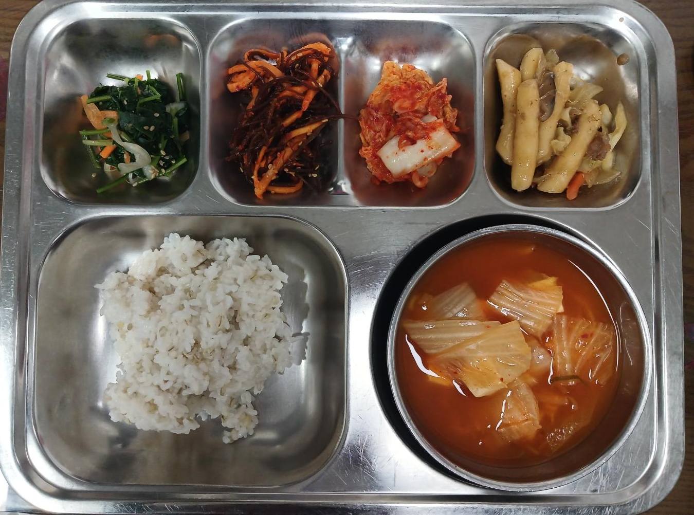 - 보리밥, 두부김치국, 간소고기떡볶음, 꼬시래기무침, 취나물무침, 배추김치
