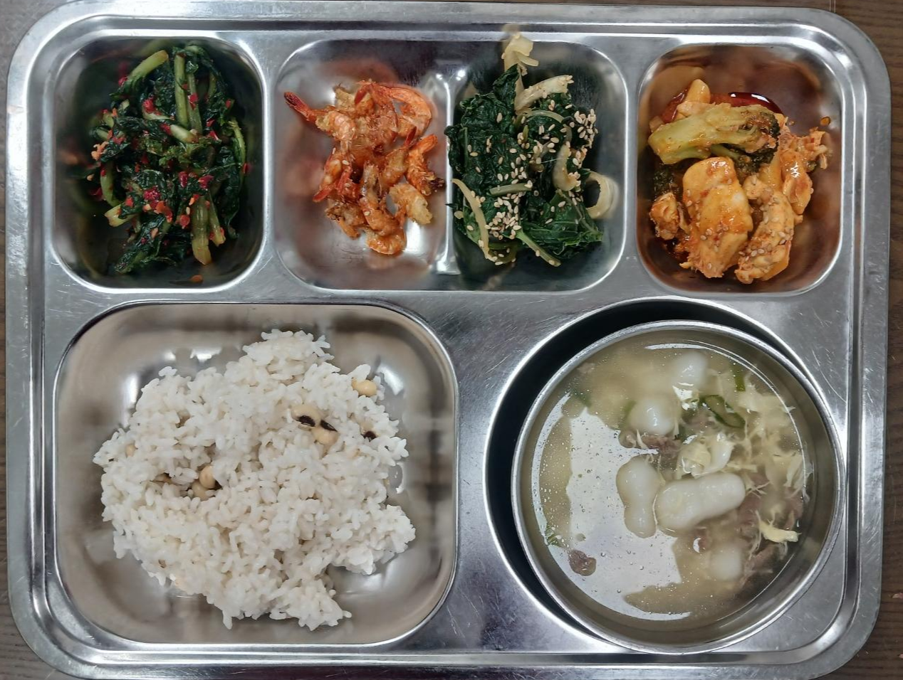 - 동부콩밥, 조랭이떡국, 닭살고추장볶음, 건새우볶음, 바라깻잎나물, 열무김치
