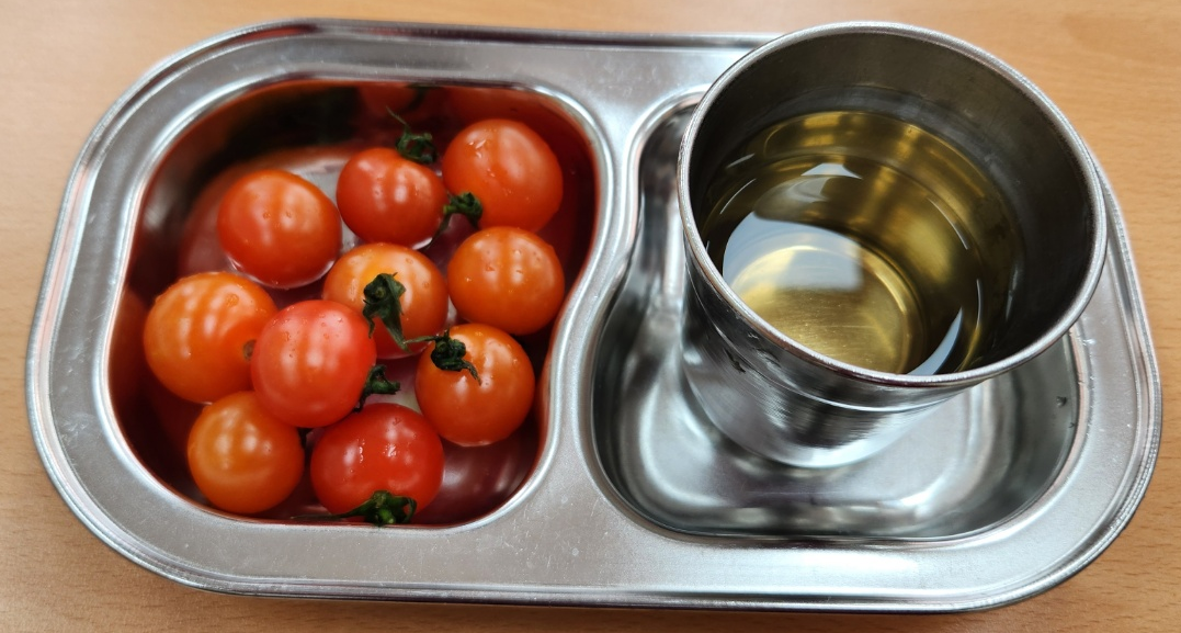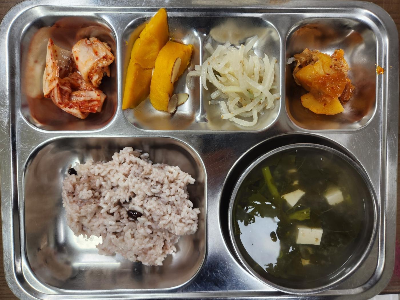 - 렌틸콩밥, 풋고추된장국, 너비아니구이, 영콘볶음, 느타리피망볶음, 배추김치