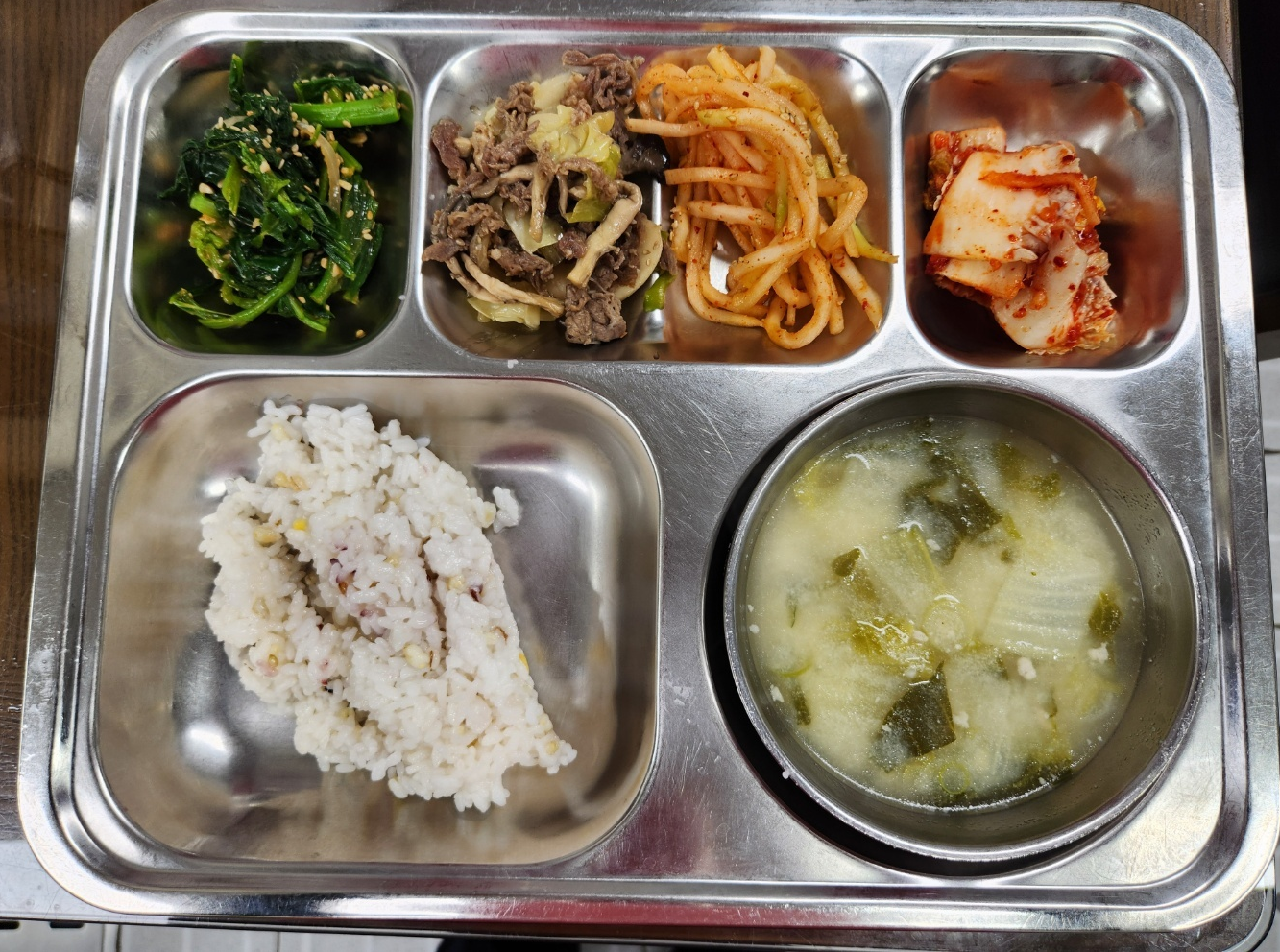 - 혼합잡곡밥,콩비지국,소불고기,아욱나물,무생채,배추김치