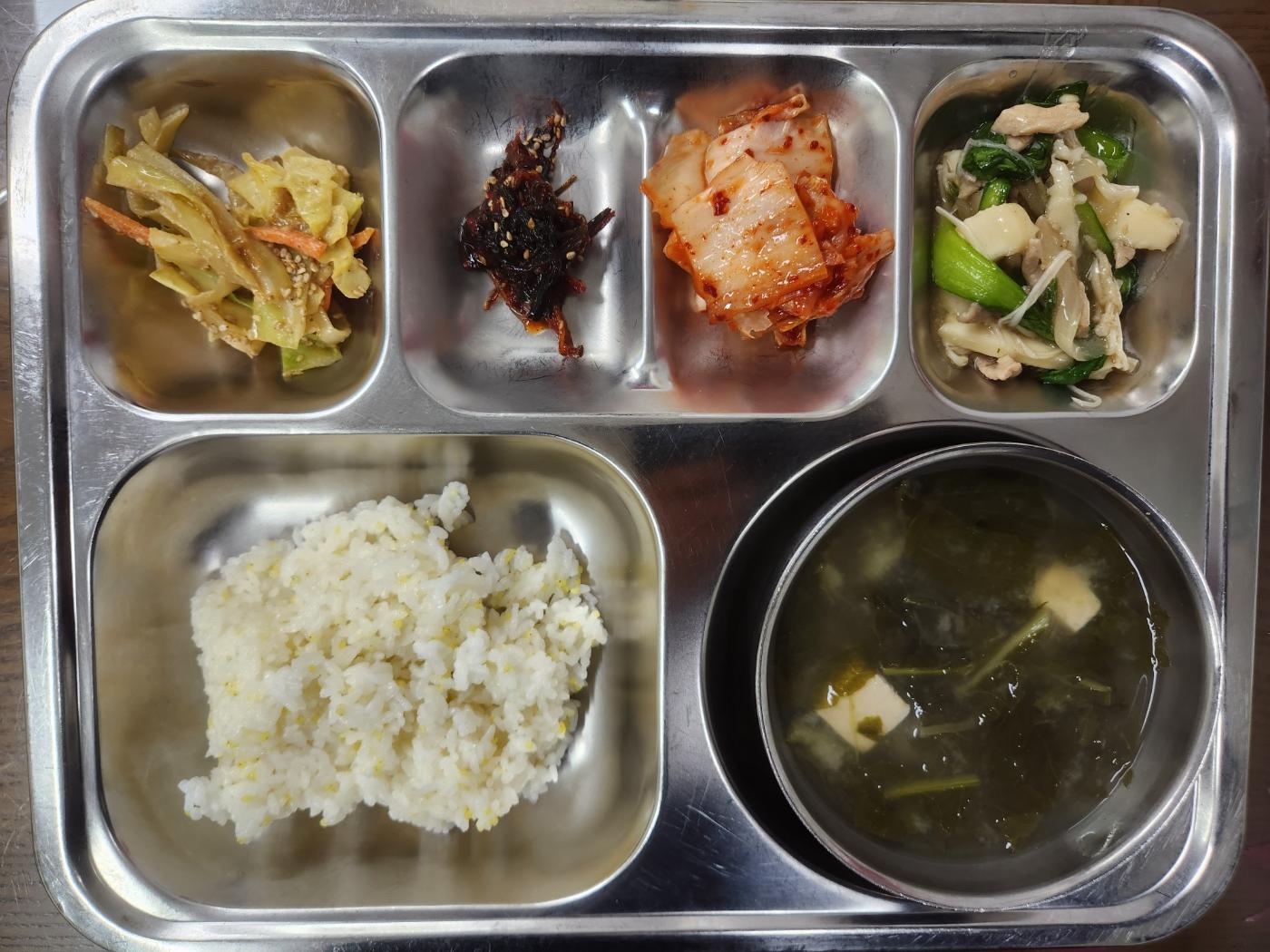 - 차조밥,열무된장국,유산슬,양배추볶음,꼬들빼기무침,배추김치